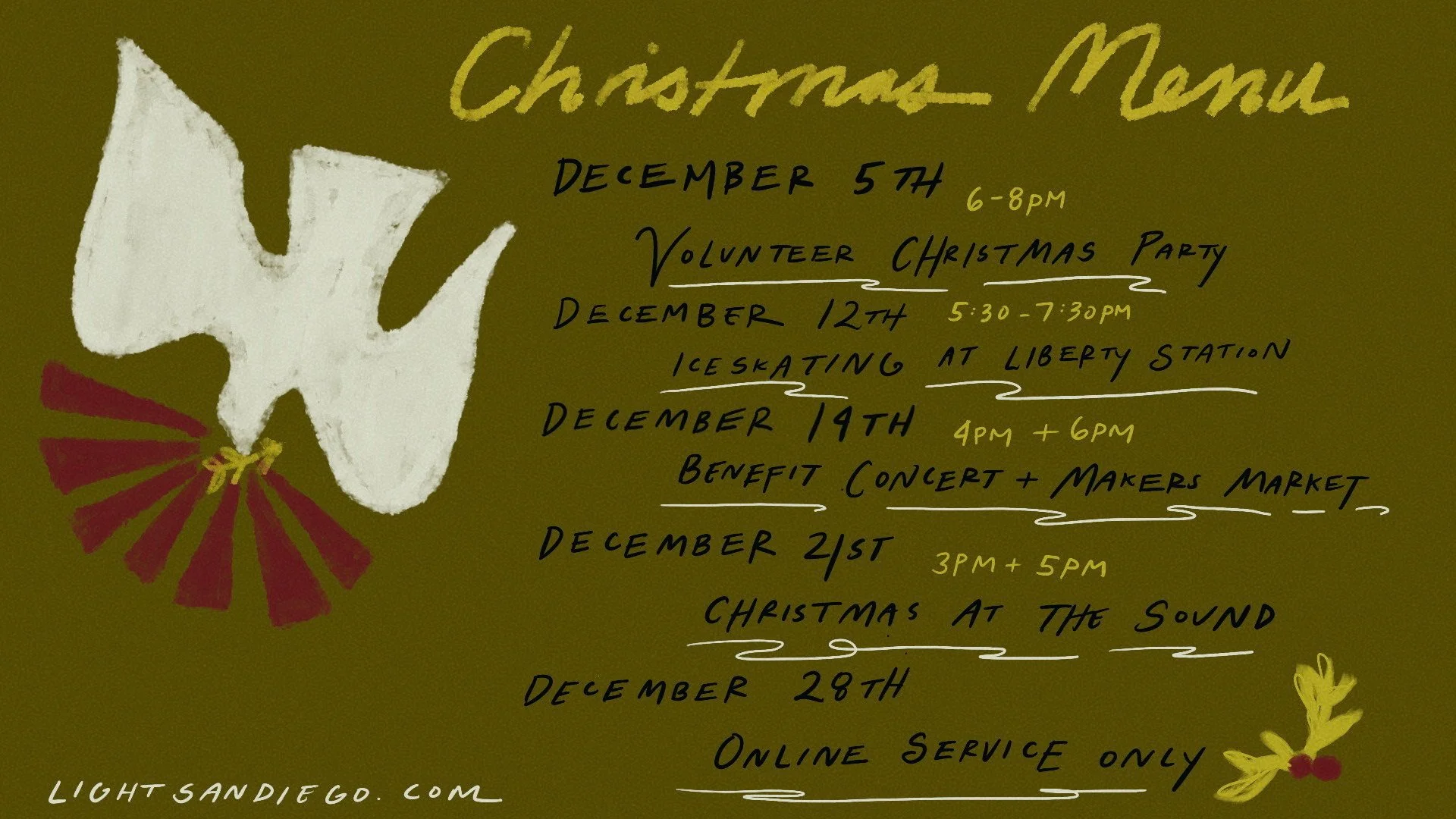 Practicing the Way of Jesus GatheringsJoin us weekly on Sundays, at an Open Table, or online. Downtown 10amJoin us in person at JULEP (1735 Hancock St, San Diego, CA 92101) OnlineWe post a full online service each Sunday Church Online AnnouncementsEvents, happenings, and announcements at Light Downtown Downtown Building Update Light Church at home every week! Join Us Online